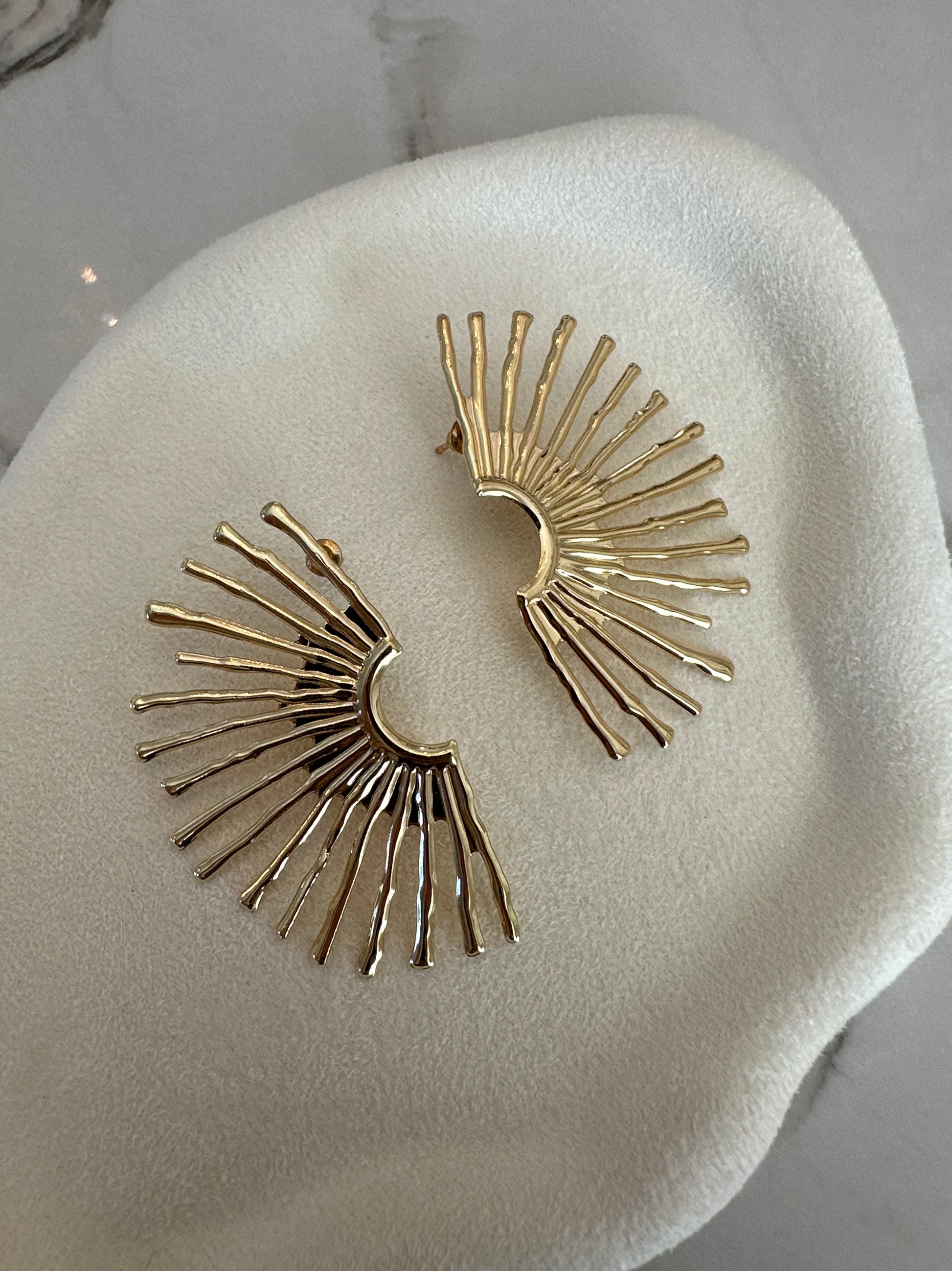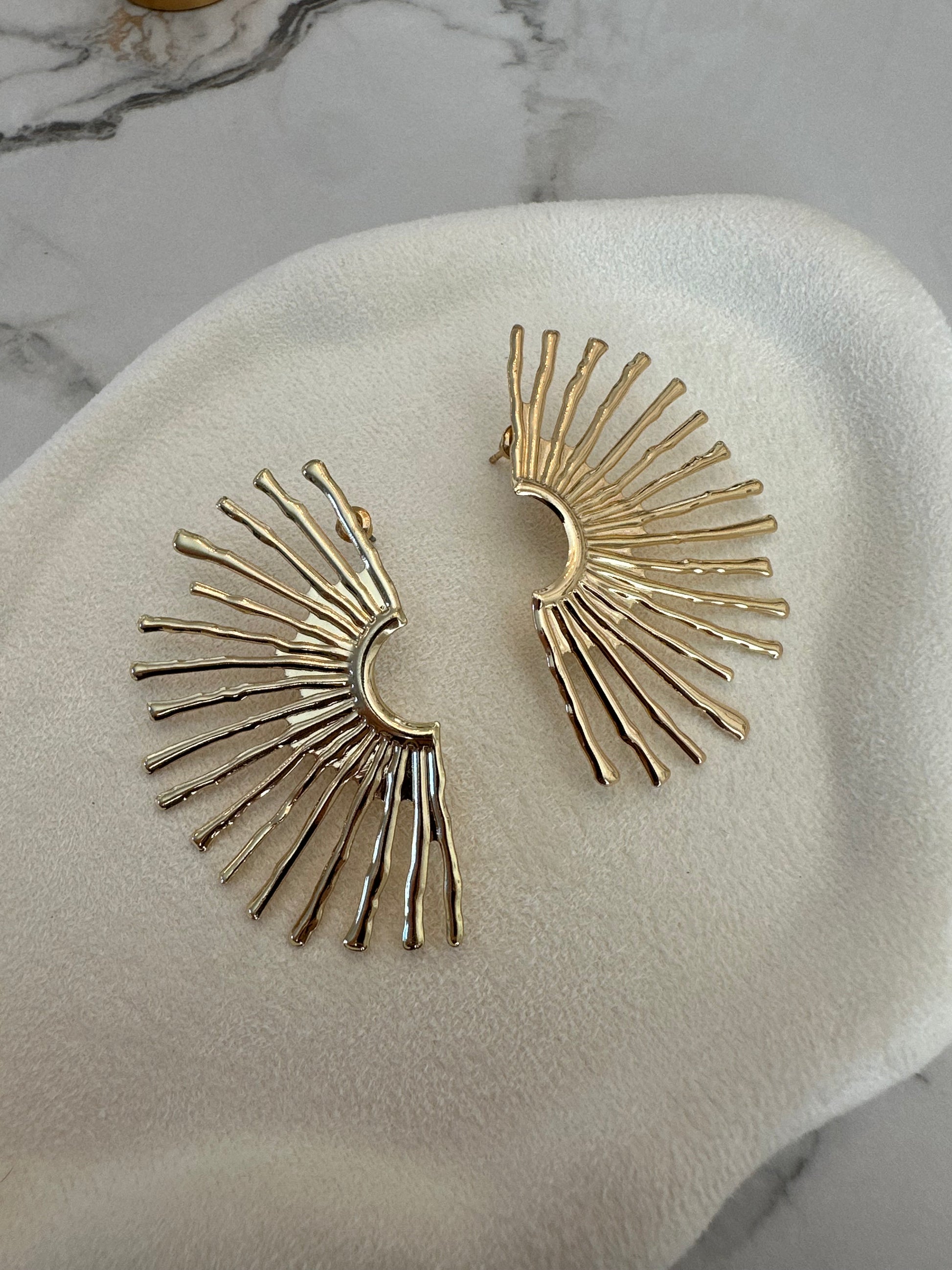 Gold-tone earrings inspired by sun rays — light, elegant, and radiant. A timeless piece that brings warmth and sophistication to every look.