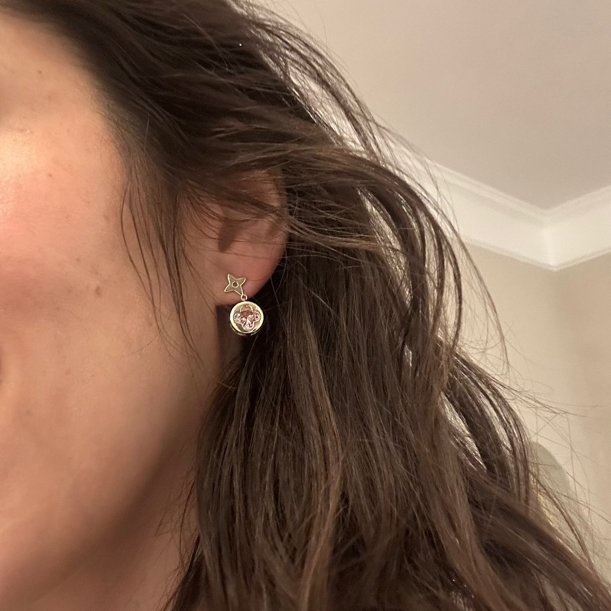 A minimalist’s dream. These petite gold studs feature a fine pendant set with a translucent pink crystal, offering a clean and contemporary silhouette. Designed for effortless layering or as a simple standalone piece, they provide a gentle flush of color that complements any skin tone with a warm, rosy glow.