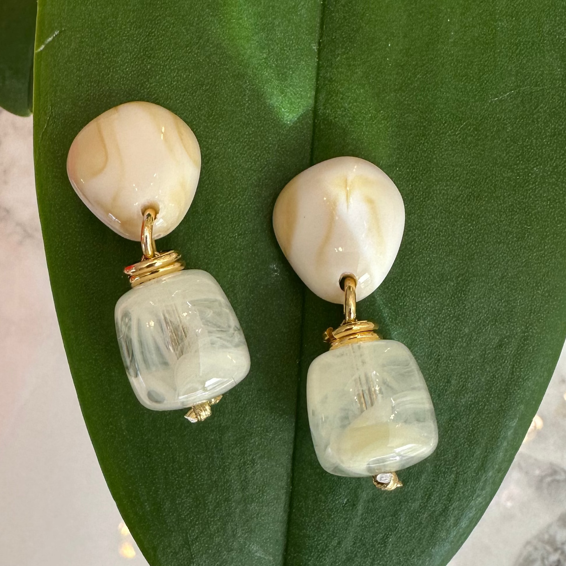 Material: Hypoallergenic metal with resin stones in beige tones