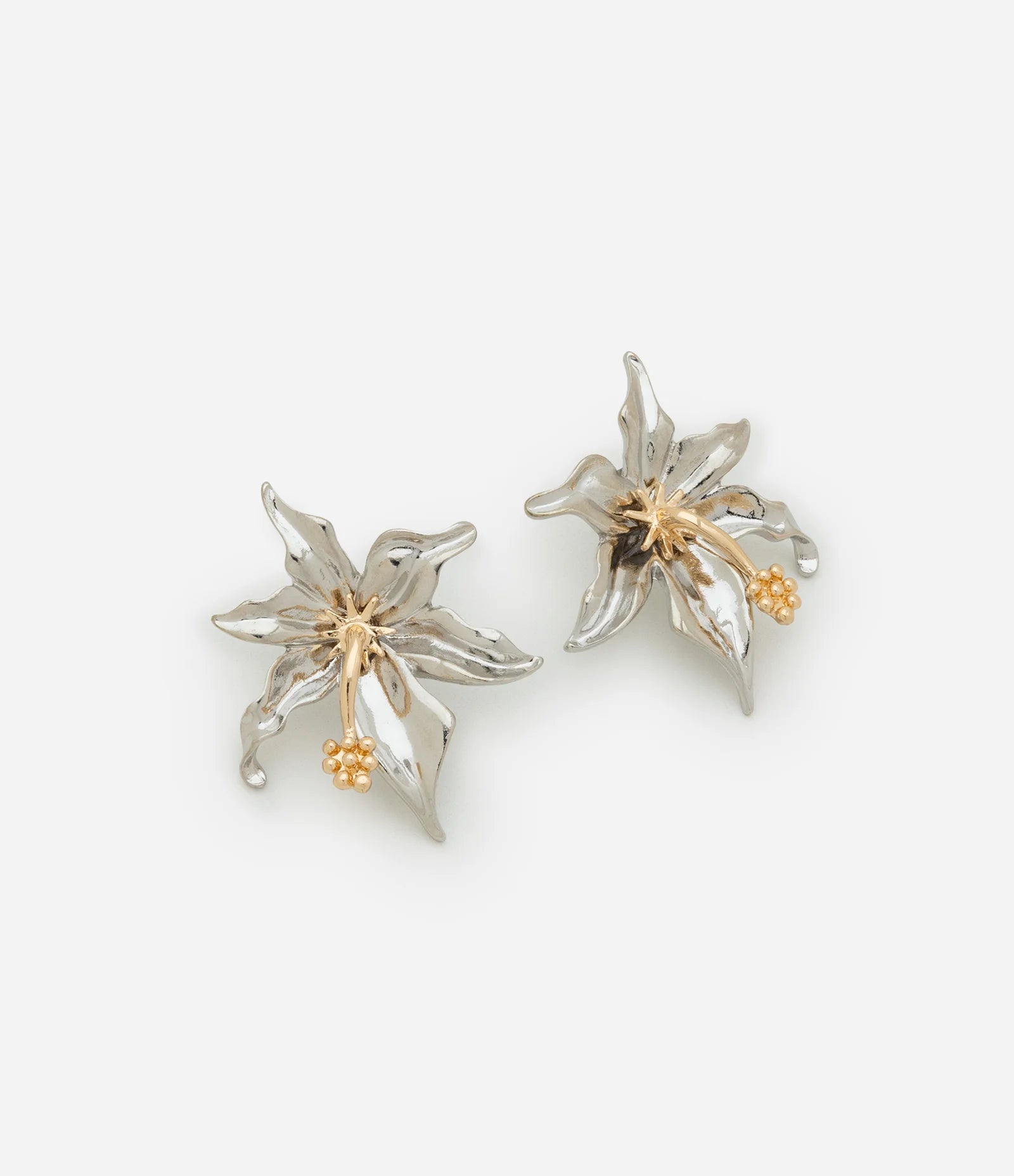 Hibiscus Flower Earring in Two-Tone Gold/Silver